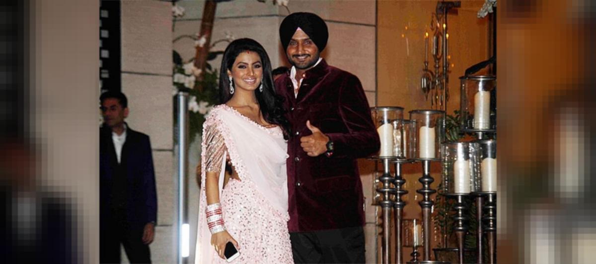 Geeta Basra Marriage - Indian cricketer harbhajan singh (l) poses with his wife geeta basra during their marriage ceremony in jalandhar.